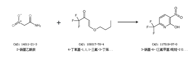 2.通过2-硝基乙酰胺和4-丁氧基-1,1,1-三氟-3-丁烯-2-酮合成3-硝基-6-(三氟甲基)吡啶-2(1h)-酮