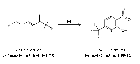1.通过1-乙氧基-3-三氟甲基-1,3-丁二烯合成3-硝基-6-(三氟甲基)吡啶-2(1h)-酮,收率约39%;