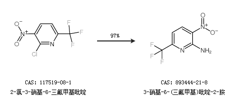 1.通过2-氯-3-硝基-6-三氟甲基吡啶合成3-硝基-6-(三氟甲基)吡啶-2-胺,收率约97%;