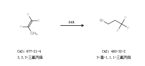 2.通过3,3,3-三氟丙烯合成3-溴-1,1,1-三氟丙烷,收率约64%;