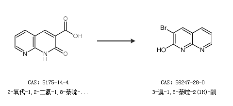 1.通过2-氧代-1,2-二氢-1,8-萘啶-3-羧酸合成3-溴-1,8-萘啶-2(1H)-酮