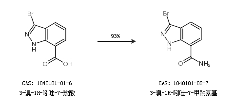 2.通过3-溴-1H-吲唑-7-羧酸合成3-溴-1H-吲唑-7-甲酰氨基,收率约93%;