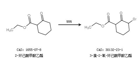 1.通过2-环己酮甲酸乙酯合成3-溴-2-氧-环己酮甲酸乙酯,收率约99%;