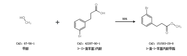 2.通过甲醇和3-(3-溴苯基)丙酸合成3-溴-3-苯基丙酸甲酯,收率约99%;