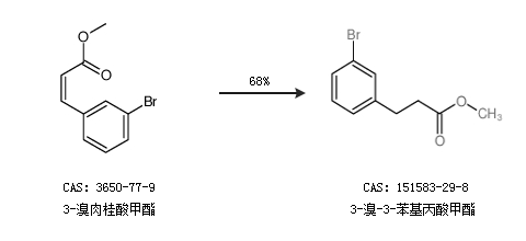 1.通过3-溴肉桂酸甲酯合成3-溴-3-苯基丙酸甲酯,收率约68%;