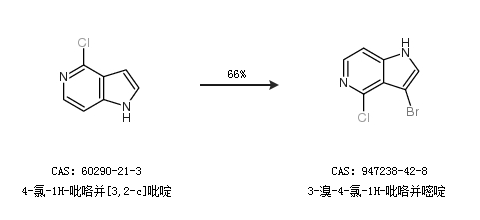 1.通过4-氯-1H-吡咯并[3,2-c]吡啶合成3-溴-4-氯-1H-吡咯并嘧啶,收率约66%;