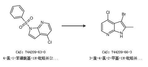 2.通过4-氯-1-苯磺酰基-1H-吡咯并[2,3-b]吡啶合成3-溴-4-氯-2-甲基-1H-吡咯并[2,3-B]吡啶