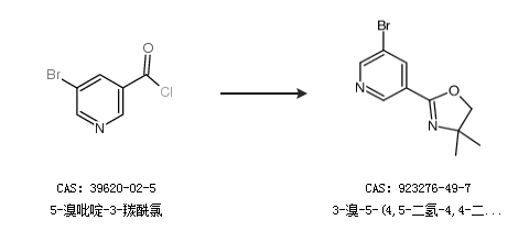 2.通过5-溴吡啶-3-羰酰氯合成3-溴-5-(4,5-二氢-4,4-二甲基-2-噁唑)-吡啶