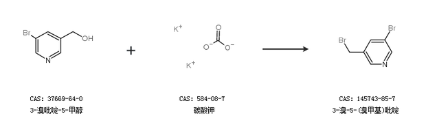 2.通过3-溴吡啶-5-甲醇和碳酸钾合成3-溴-5-(溴甲基)吡啶