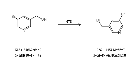 1.通过3-溴吡啶-5-甲醇合成3-溴-5-(溴甲基)吡啶,收率约67%;
