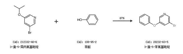 2.通过3-溴-5-异丙氧基吡啶和苯酚合成3-溴-5-苯氧基吡啶,收率约67%;