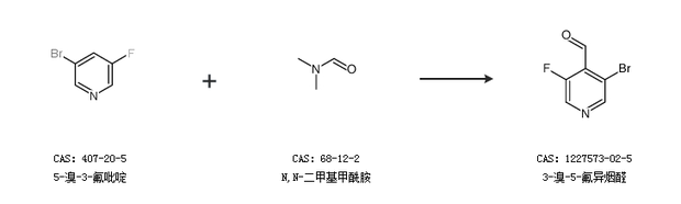 1.通过5-溴-3-氟吡啶和N,N-二甲基甲酰胺合成3-溴-5-氟异烟醛