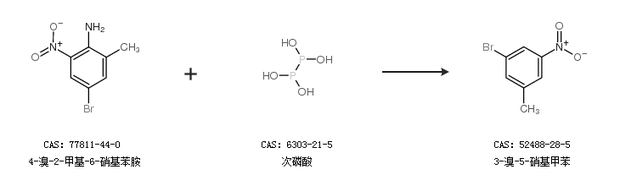 2.通过4-溴-2-甲基-6-硝基苯胺和次磷酸合成3-溴-5-硝基甲苯