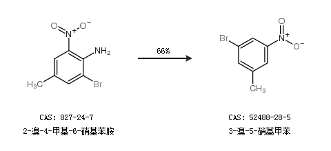 1.通过2-溴-4-甲基-6-硝基苯胺合成3-溴-5-硝基甲苯,收率约66%;