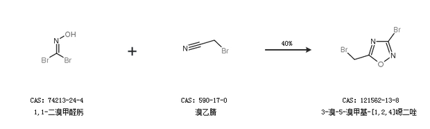 1.通过1,1-二溴甲醛肟和溴乙腈合成3-溴-5-溴甲基-[1,2,4]噁二唑,收率约40%;