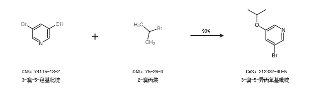 2.通过3-溴-5-羟基吡啶和2-溴丙烷合成3-溴-5-异丙氧基吡啶,收率约90%;