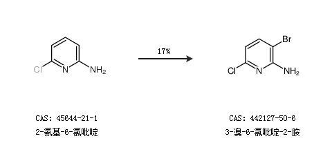 1.通过2-氨基-6-氯吡啶合成3-溴-6-氯吡啶-2-胺,收率约17%;