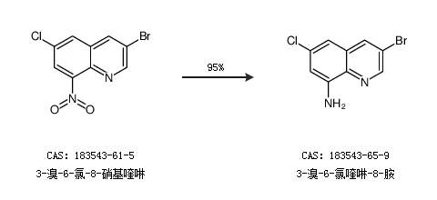 1.通过3-溴-6-氯-8-硝基喹啉合成3-溴-6-氯喹啉-8-胺,收率约95%;