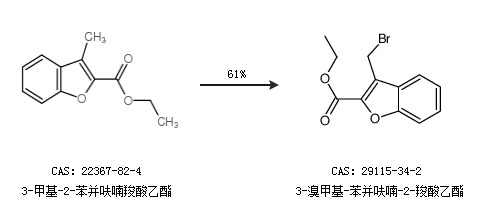 1.通过3-甲基-2-苯并呋喃羧酸乙酯合成3-溴甲基-苯并呋喃-2-羧酸乙酯,收率约61%;