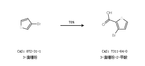2.通过3-溴噻吩合成3-溴噻吩-2-甲酸,收率约78%;