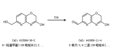 2.通过6-(羟基甲基)-2H-吡啶并[3,2-b][1,4]噁嗪-3(4H)-酮合成3-氧代-3,4-二氢-2H-吡啶并[3,2-b][1,4]噁嗪-6-甲醛,收率约72%;