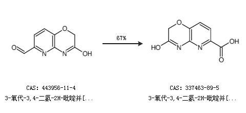 1.通过3-氧代-3,4-二氢-2H-吡啶并[3,2-b][1,4]噁嗪-6-甲醛合成3-氧代-3,4-二氢-2H-吡啶并[3,2-b][1,4]噁嗪-6-羧酸,收率约67%;