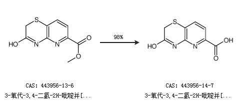 2.通过3-氧代-3,4-二氢-2H-吡啶并[3,2-b][1,4]噻嗪-6-羧酸甲酯合成3-氧代-3,4-二氢-2H-吡啶并[3,2-b][1,4]噻嗪-6-羧酸,收率约98%;
