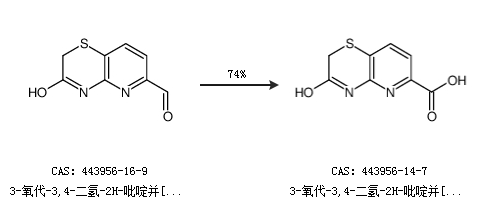 1.通过3-氧代-3,4-二氢-2H-吡啶并[3,2-b][1,4]噻嗪-6-甲醛合成3-氧代-3,4-二氢-2H-吡啶并[3,2-b][1,4]噻嗪-6-羧酸,收率约74%;