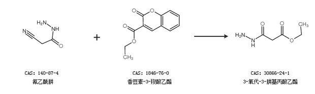 1.通过氰乙酰肼和香豆素-3-羧酸乙酯合成3-氧代-3-肼基丙酸乙酯