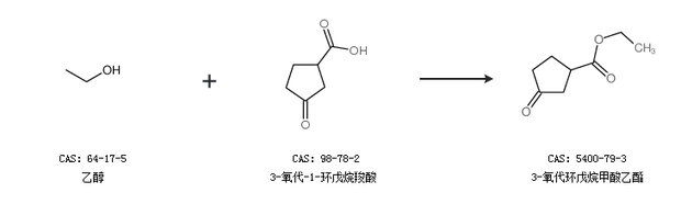 2.通过乙醇和3-氧代-1-环戊烷羧酸合成3-氧代环戊烷甲酸乙酯