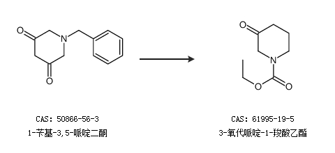 2.通过1-苄基-3,5-哌啶二酮合成3-氧代哌啶-1-羧酸乙酯