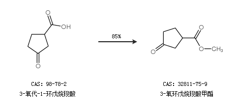 1.通过3-氧代-1-环戊烷羧酸合成3-氧环戊烷羧酸甲酯,收率约85%;