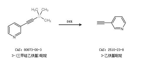 1.通过3-(三甲硅乙炔基)吡啶合成3-乙炔基吡啶,收率约84%;