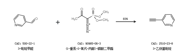 2.通过3-吡啶甲醛和(1-重氮-2-氧代-丙醇)-膦酸二甲酯合成3-乙炔基吡啶,收率约83%;
