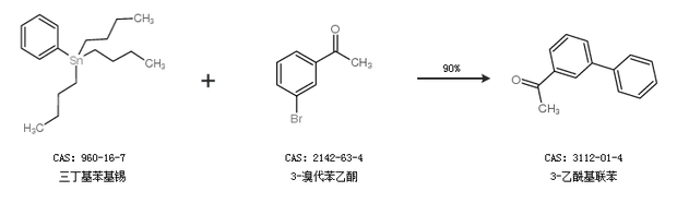 2.通过三丁基苯基锡和3-溴代苯乙酮合成3-乙酰基联苯,收率约90%;