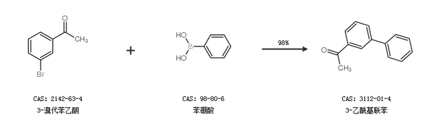 1.通过3-溴代苯乙酮和苯硼酸合成3-乙酰基联苯,收率约98%;