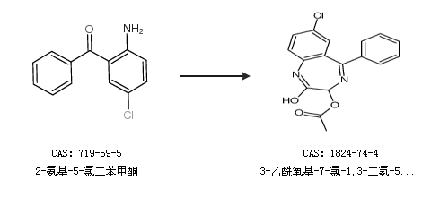 1.通过2-氨基-5-氯二苯甲酮合成3-乙酰氧基-7-氯-1,3-二氢-5-苯基-2H-1,4-苯并二氮杂革-2-酮