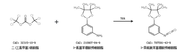 1.通过二(三氯甲基)碳酸酯和3-氨基苯硼酸频哪醇酯合成3-异氰酰苯基硼酸频哪醇酯,收率约76%;