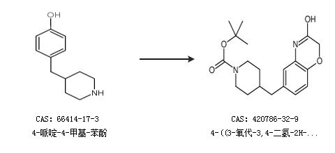 1.通过4-哌啶-4-甲基-苯酚合成4-((3-氧代-3,4-二氢-2H-苯并[b][1,4]噁嗪-6-基)甲基)哌啶-1-羧酸叔丁酯