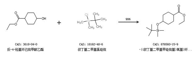 1.通过反-4-羟基环己烷甲酸乙酯和叔丁基二甲基氯硅烷合成4-((叔丁基二甲基甲硅烷基)氧基)环己烷羧酸乙酯,收率约99%;