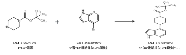 1.通过1-Boc-哌嗪和4-溴-1H-吡咯并[2,3-b]吡啶合成4-(1H-吡咯并[2,3-B]吡啶-4-基)-1-哌嗪羧酸叔丁酯