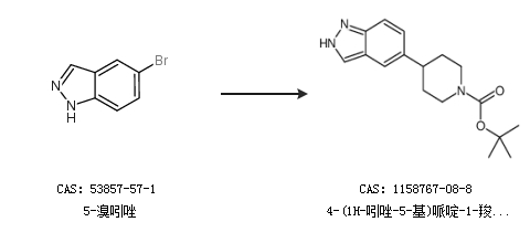 1.通过5-溴吲唑合成4-(1H-吲唑-5-基)哌啶-1-羧酸叔丁酯