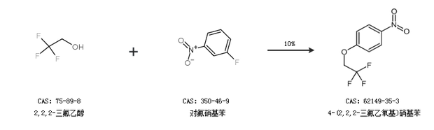1.通过2,2,2-三氟乙醇和对氟硝基苯合成4-(2,2,2-三氟乙氧基)硝基苯,收率约10%;