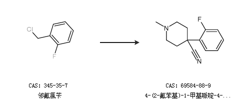 1.通过邻氟氯苄合成4-(2-氟苯基)-1-甲基哌啶-4-甲腈
