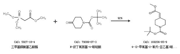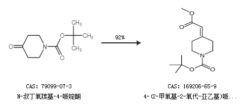 2.通过N-叔丁氧羰基-4-哌啶酮合成4-(2-甲氧基-2-氧代-亚乙基)哌啶-1-羧酸叔丁酯,收率约92%;