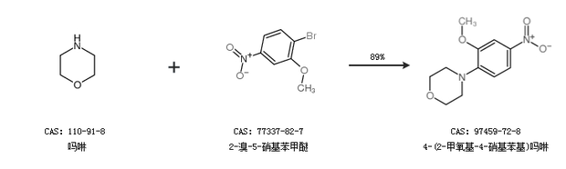 1.通过吗啉和2-溴-5-硝基苯甲醚合成4-(2-甲氧基-4-硝基苯基)吗啉,收率约89%;