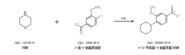 2.通过吗啉和2-氯-5-硝基茴香醚合成4-(2-甲氧基-4-硝基苯基)吗啉,收率约71%;