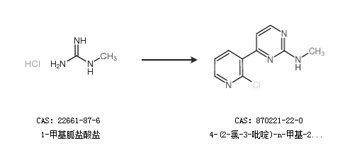 2.通过1-甲基胍盐酸盐合成4-(2-氯-3-吡啶)-n-甲基-2-嘧啶胺