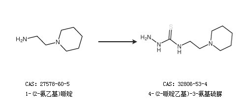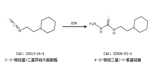 1.通过2-(1-哌啶基)乙基异硫代氰酸酯合成4-(2-哌啶乙基)-3-氨基硫脲,收率约83%;