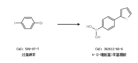 2.通过对溴碘苯合成4-(2-噻酚基)苯基硼酸